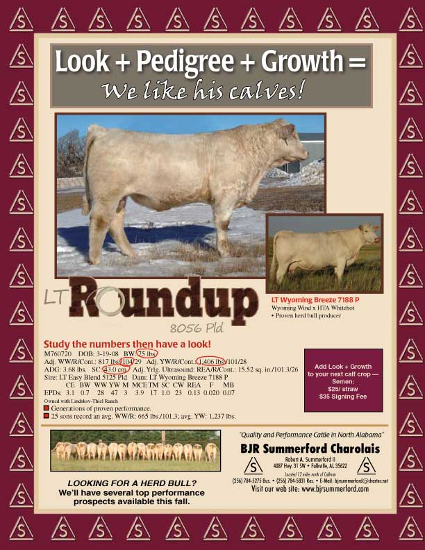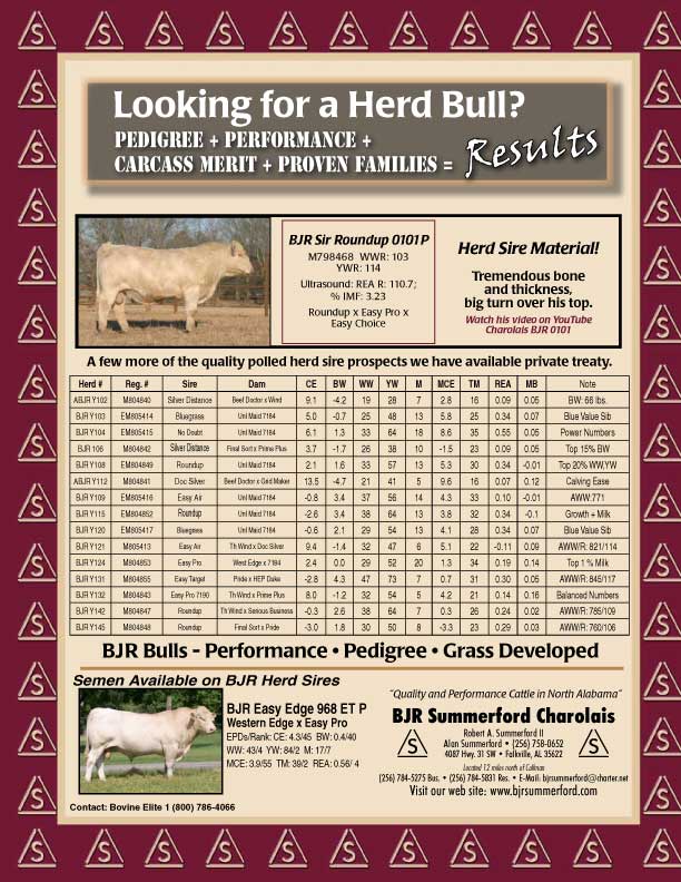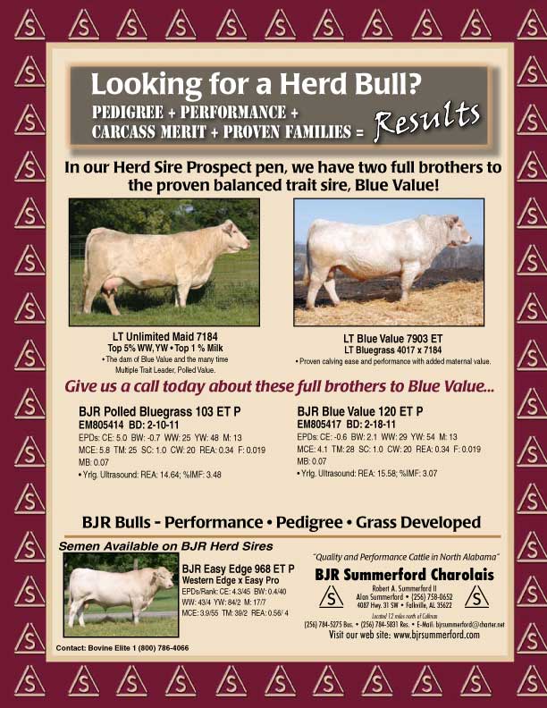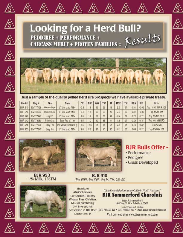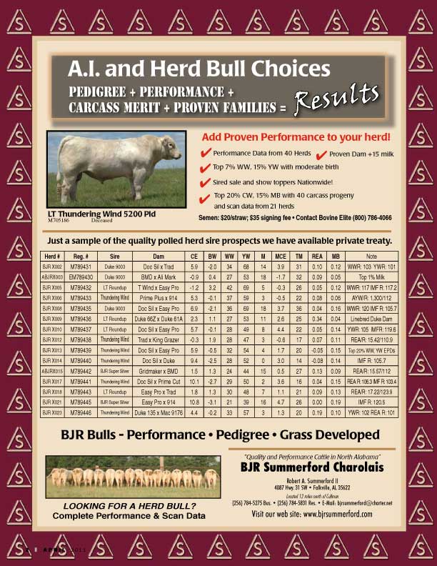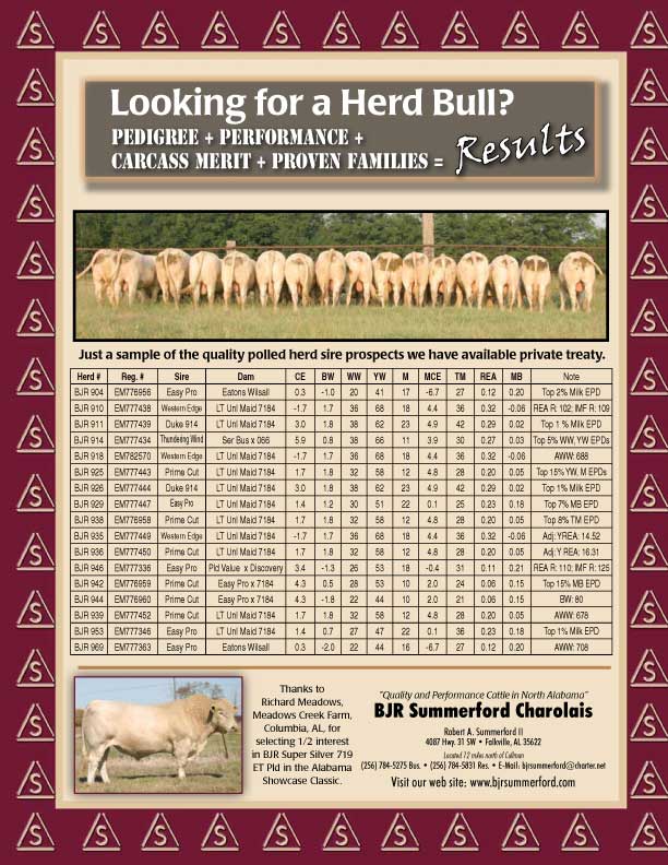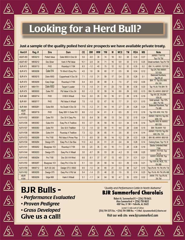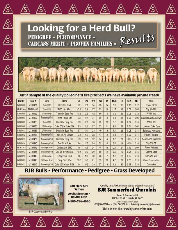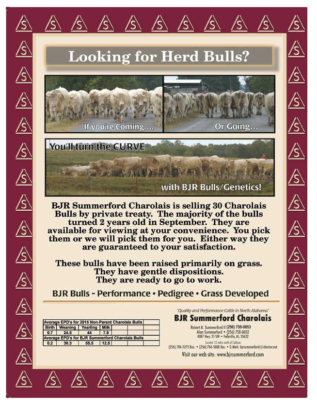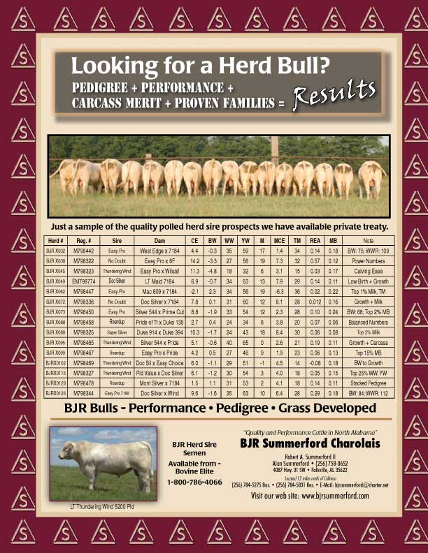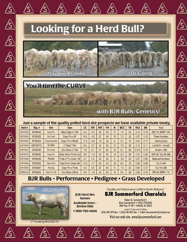 ![]() ROBERT A. SUMMERFORD II 148 West Pike Rd. Falkville, AL 35622 Located 12 miles north of Cullman Office: 256-784-5255 • Robert's Cell 256-758-0653. • Alan's Cell 256-758-0652 Email: bjrsummerford@charter.net |
